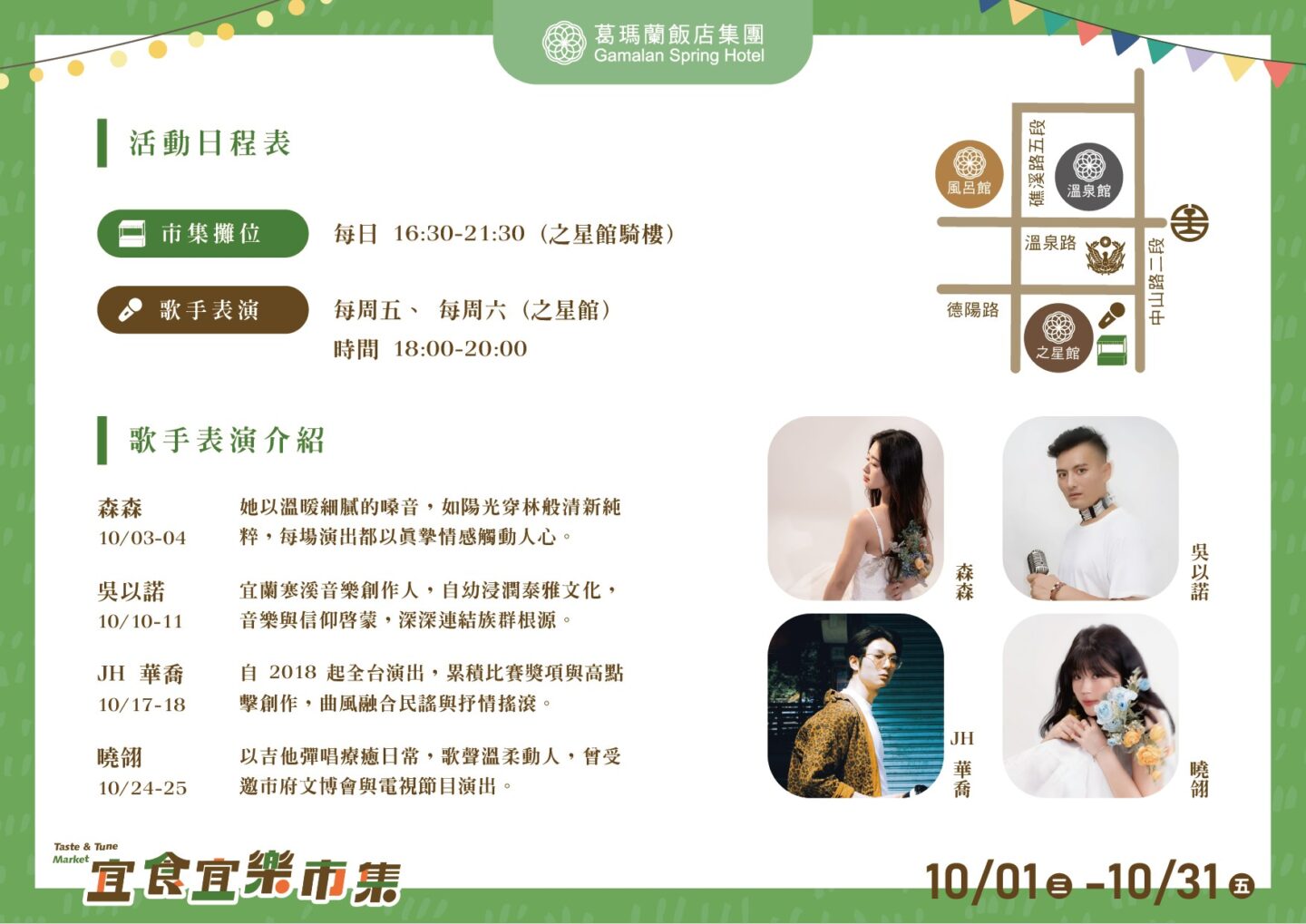 .2025/10/01-10/31期間,凡入住葛瑪蘭飯店集團之住客,皆贈送乙張「市集集點抽獎卡」。