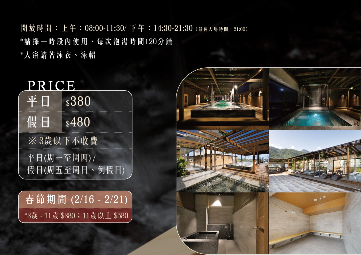 價目表|露天溫泉非住客收費標準