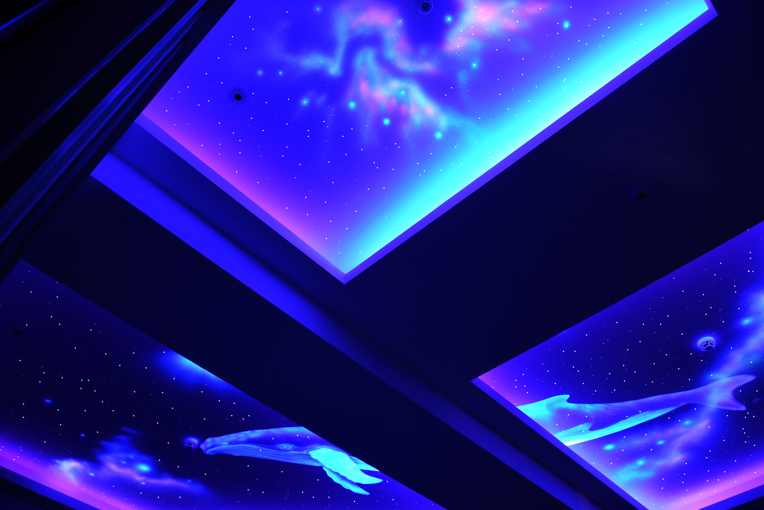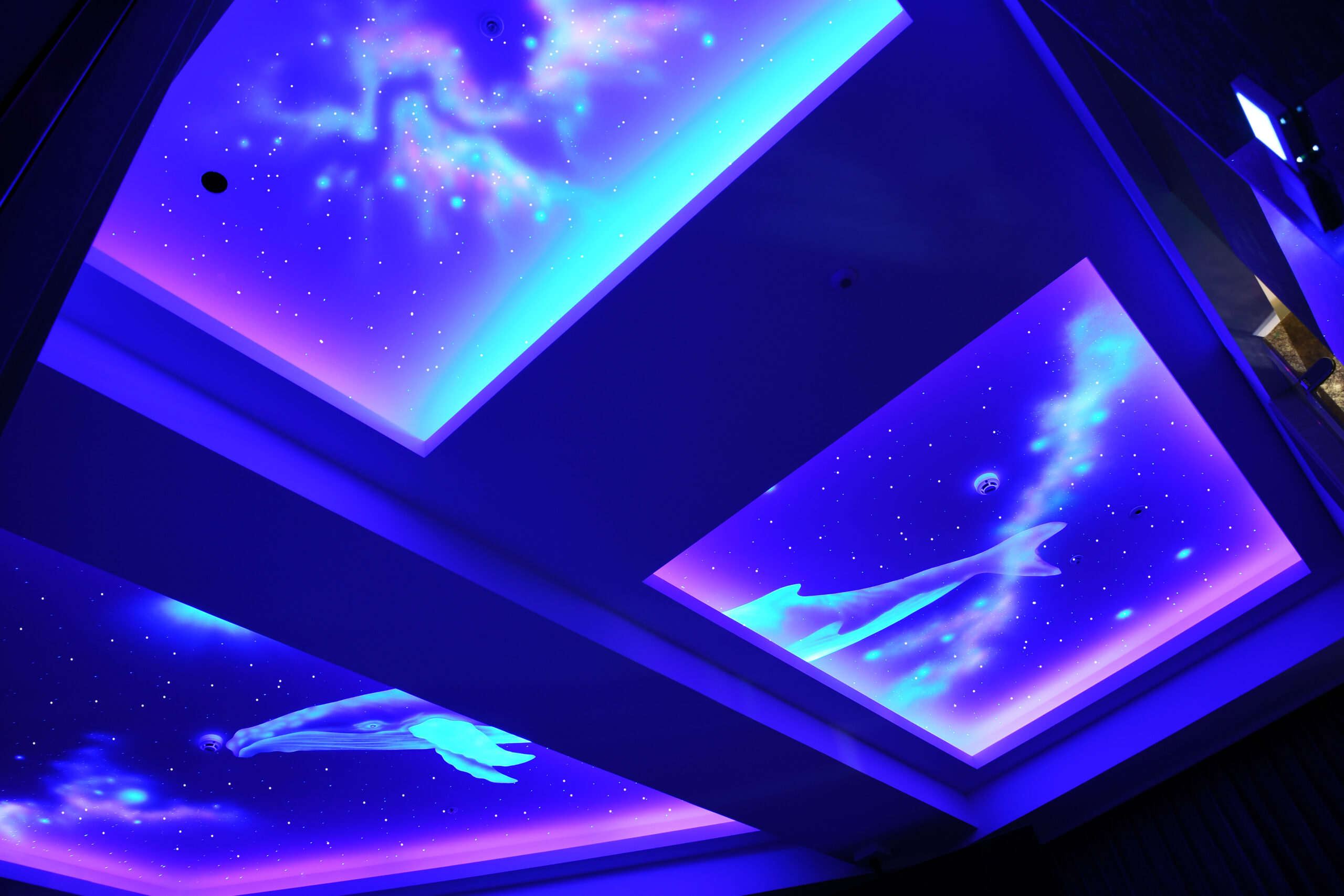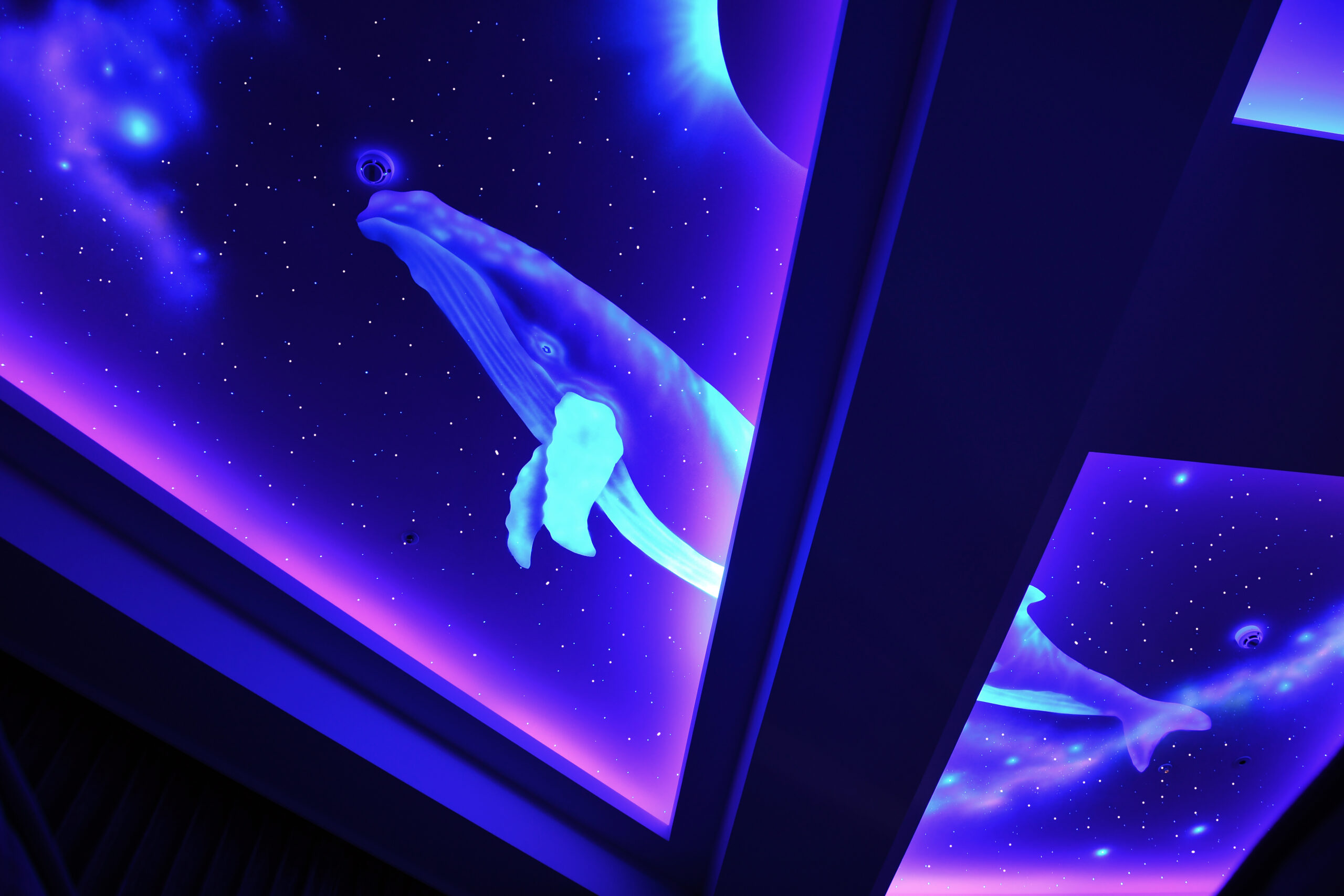 .房間:宇宙的壯闊、銀河的深遠,猶如深海與鯨魚般,想像鯨魚像銀河般出現在廣大的星空宇宙裡,雖然巨大,但在宇宙中又顯得渺小。